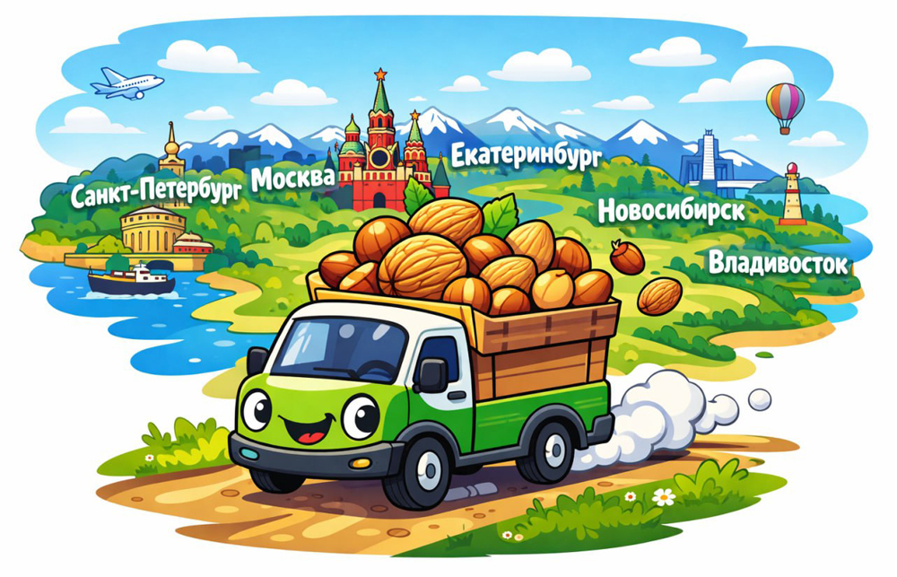 Теперь доставляем заказы не только по Петербургу, но и в регионы! Любимые орехи, сухофрукты и сладости стали ещё доступнее - оформляйте заказ и получайте его в своём городе.